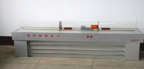 該井下各種風(fēng)門演示裝置(適合于二、三、四級),采用電傳動,使電機(jī)車在軌道行走,演示各種閉鎖風(fēng)門的開關(guān)原理。