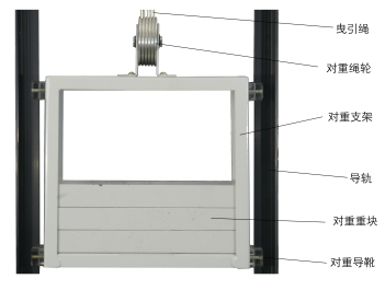 2. 井道部分:包括導軌、對重裝置、緩沖器、限速器、鋼絲繩張緊裝置、隨行電纜等。見下圖
