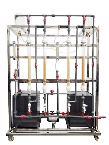 交換柱、耐酸堿泵、離子交換樹脂、流量計(4-40L/h)、排水槽、原水箱、再生液投配裝置、閥門、管道、不銹鋼框架、控制屏。