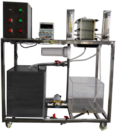 有機玻璃外箱體、電滲析器、直流穩壓電源、配水箱、進水泵、流量計、壓力表、不銹鋼框架、控制屏。
