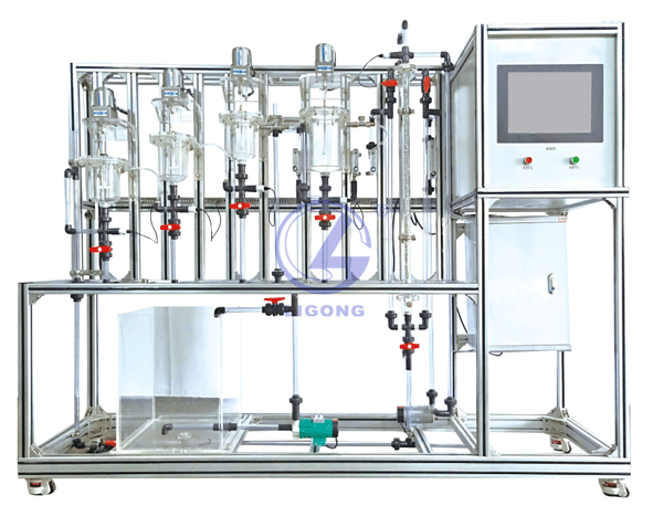 有機玻璃反應釜、管式反應器、轉子流量計、水箱、水泵、電機、數字電導儀閥門、管道、中央處理器、觸摸屏、高品質鋁合金型材框架。