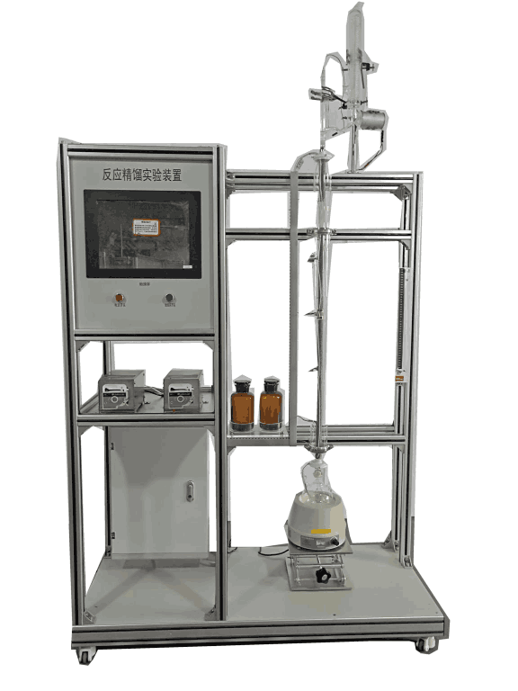 玻璃精餾塔、保溫塔、冷凝器、玻璃塔釜、加熱器、蠕動泵、U型壓力計、溫度傳感器、中央處理器、觸摸屏、高品質鋁合金型材框架。