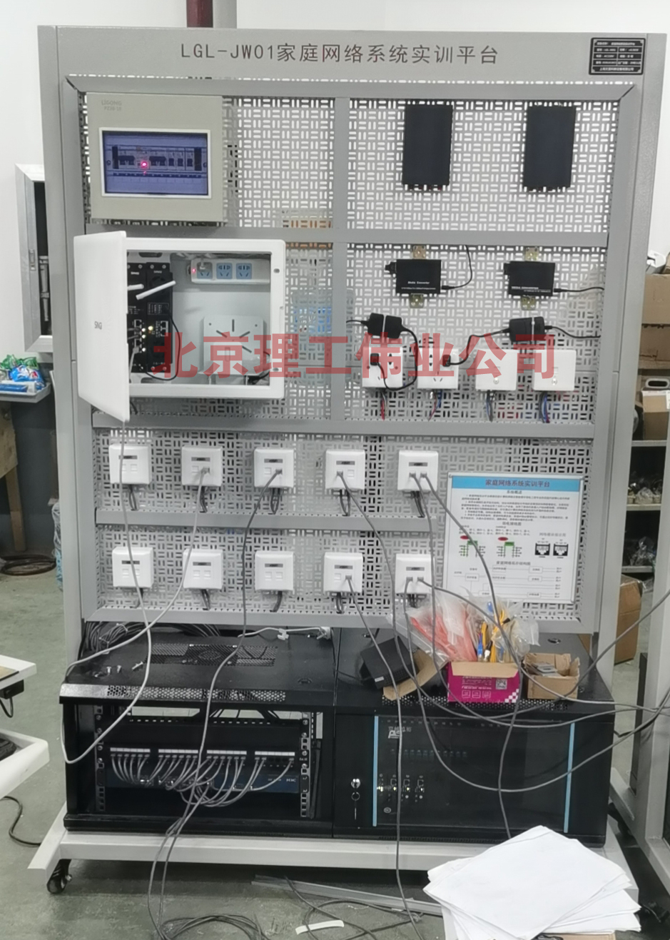 2、家庭網絡系統實訓平臺能夠使學生完成設備與信息盤間的安裝與布線、進線水平布線的敷設及建筑物子系統中光纜、電纜、通訊線等敷設等項目,并可通過垂直子和水平布線系統對系統進行拓展,綜合其它管理級別的設備,從而掌握其各系統接線技術要點。
