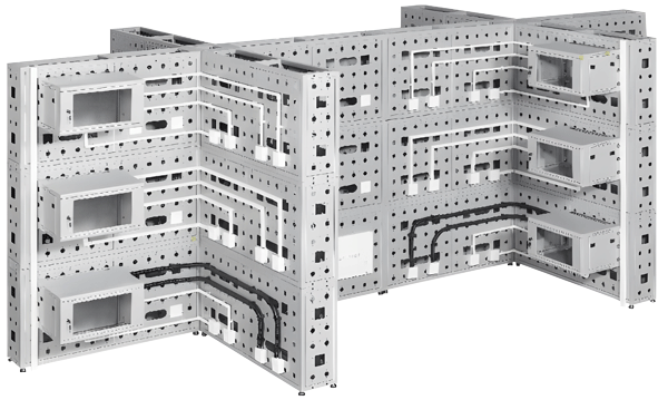 實訓裝置采用新一代模塊化全鋼結構設計,可以實現模塊化裝配,主要有主體框架、多功能面板和管理間小機柜等部分組成。框架采用30*30的方鋼焊接,安全穩固,移動方便;多功能面板大小統一設計,功能多樣,可以獨立更換及裝配。實訓裝置內外均采用高強度全鋼結構設計,實訓裝置配置各種安裝孔,適合安裝各種IT類產品,進行工程技術實訓,設備分為上、中、下三層結構,模擬三層建筑結構,整體模塊化設計,能夠按照實訓場地尺寸合理布局,適合任意實訓場地的設備安裝與實訓。