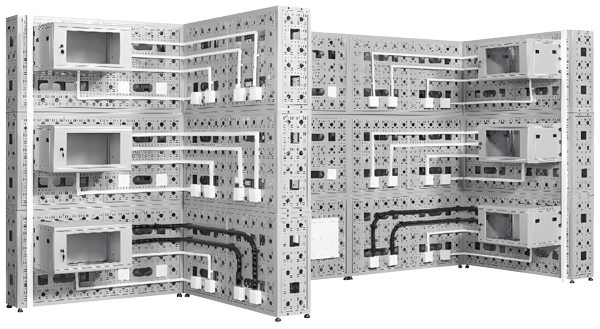 4、多功能墻面模塊化設(shè)計,分為不同功能的安裝區(qū)域,可以直觀模擬建筑物不同工作區(qū)域,如工作區(qū)布線、暗裝光纖入戶多媒體信息箱布線、機(jī)柜布線等。