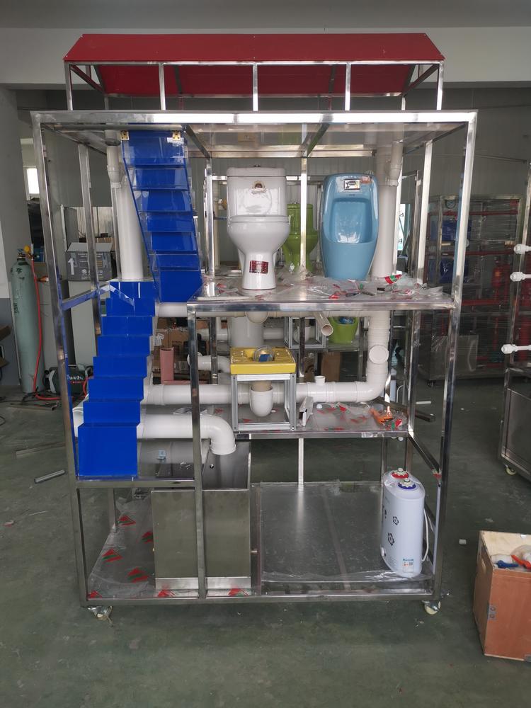 2、生活給排水演示及實訓系統由鍋爐及循環泵實現熱循環演示。有機玻璃洗澡間包括:、浴缸1套、洗臉盤1套、大便器1套、配水箱1只、水泵1臺、樓梯、連接管道和球閥、不銹鋼支架等組成。