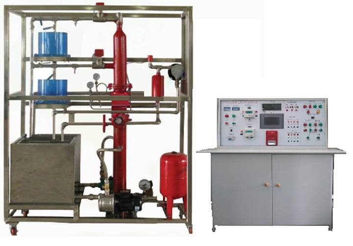 模型框架和水箱等主要部件全部使用不銹鋼器件,保證不生銹、不易老化,可以模擬兩層大樓噴淋滅火系統;模型系統主要由噴淋水泵、氣壓罐、濕式報警閥、水力警鈴、延時器、壓力開關、水流指示器、封閉式噴頭、試驗閥、火災探測器、火災報警器等典型噴水滅火設備構成,能生動模擬大樓內水滅火系統的典型結構。