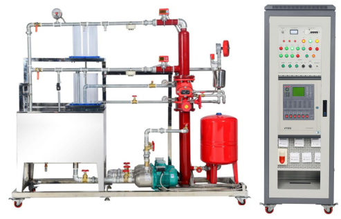LG-LXN02A型 自動噴水滅火消防聯動控制系統由噴水滅火對象和控制柜組成,其中噴水滅火對象的器件全部為工程器件,可展示建筑中濕式噴水滅火系統的典型結構,由不銹鋼框架、水箱、濕式報警閥、信號蝶閥、水力警鈴、水延遲器、各類常見噴淋頭、主、備增壓泵、恒壓泵、壓力開關、樓層水流指示器、各功能用途壓力表、末端試水、有機玻璃水箱等組成。控制柜主要由訊響器、輸入輸出模塊等組成。