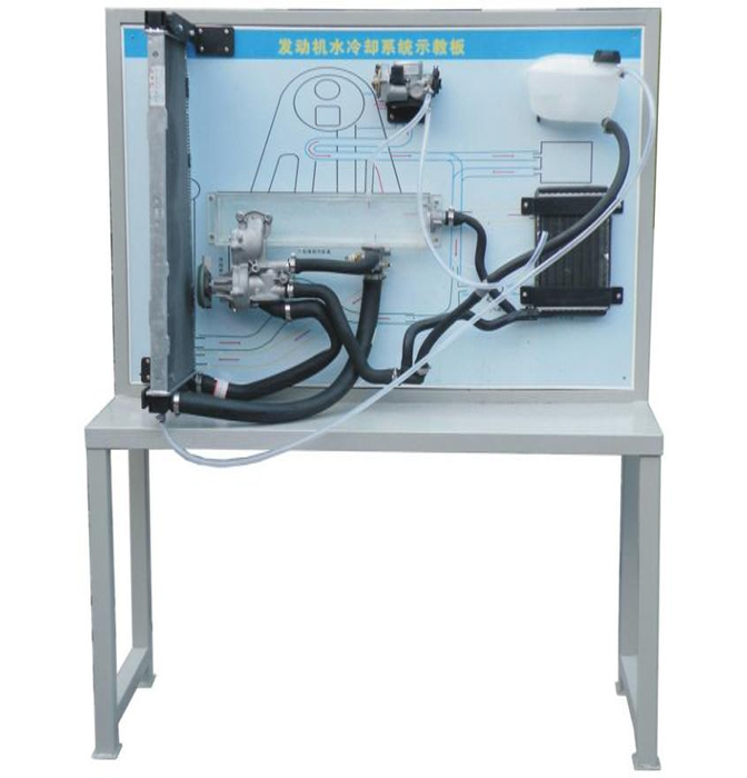 汽車冷卻系示教板主要由水泵總成、散熱器、膨脹水箱、節溫器、全車水管、暖風水箱、節氣門總成、線路圖、可移動臺架、使用說明書、DC12電源組成。