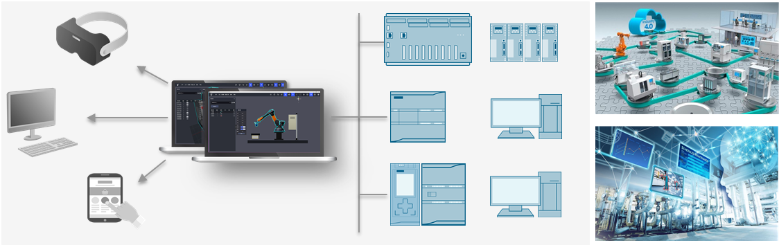 4、全系列控制器仿真:不僅僅是PLC系統,配套有虛擬AGV控制器,虛擬工業機器人示教器以及多軸伺服運動控制器,能夠按照工業產線系統一步步搭建及規劃整個產線仿真應用。