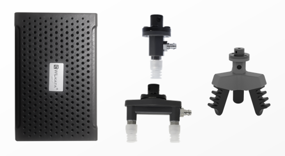 機器人開發氣動套件包含氣動吸盤、柔爪、氣源。安裝于機械臂末端,實現物品抓取與釋放