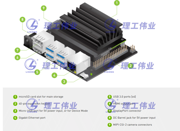 JNano開發套件作為邊緣計算教學實訓產品,將人工智能相關算法與邊緣設備相結合。支持深度學習優化TensorRT、TensorFlow、OpenCV、Python、Keras、Pytorch和ROS等技術棧。可并行運行多個神經網絡,旨在為高校智能科學與技術、計算機科學與技術等相關專業提供人工智能教學、科研的配套資源支撐。