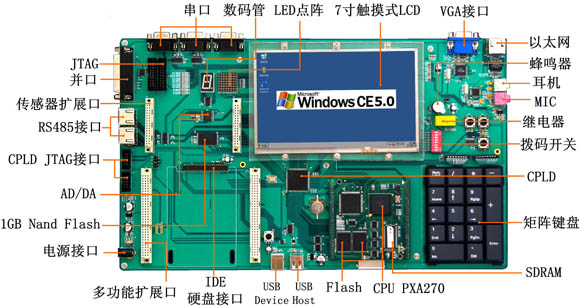 開發環境:支持Linux 2.4/ 2.6 和Windows CE 5.0 /6.0 操作系統。 擴展功能: 針對各院校不同專業的工程需求,開發平臺設計了雙排歐式座擴展接口,提供了眾多可選擴展資源,并有相應的實驗例子,如GPS實驗、GSM/GPRS實驗、非接觸式射頻卡實驗、直流/步進電機實驗、指紋識別實驗等等,并兼容DICE-VI智能傳感器擴展。 大容量的儲存能力:板上1GB Nand Flash,符合海量儲存需求。 |