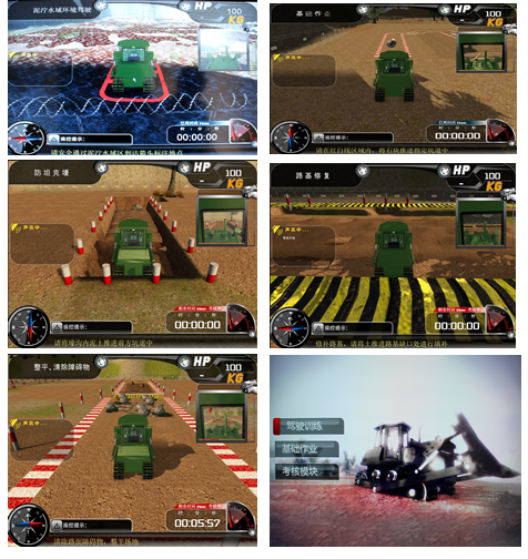 7.基礎訓練模式:可滿足設備基礎規范操作的要求,可實現各種轉向、行走、鏟刀升降、鏟刀傾斜以及施工作業的逼真模擬。